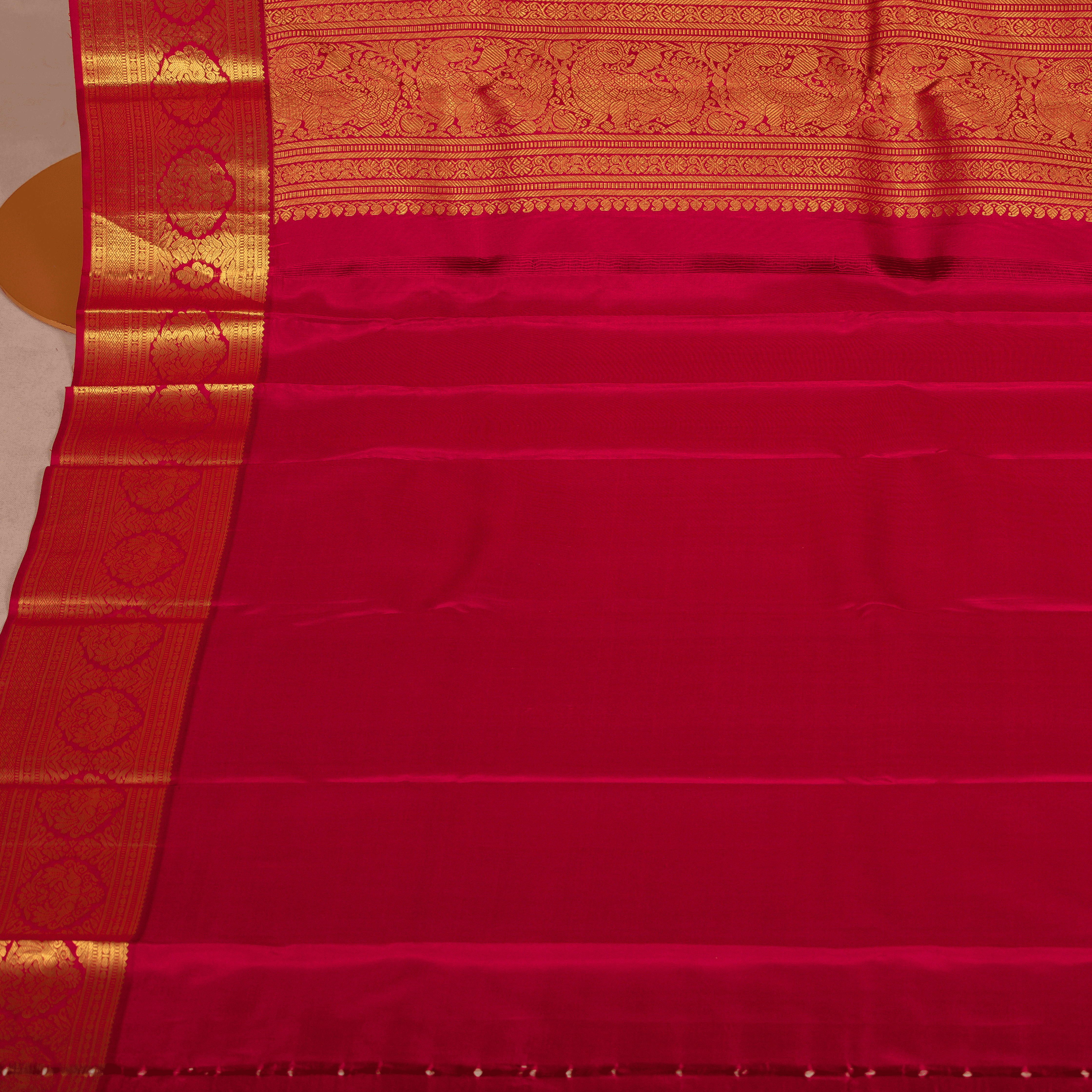 Bottle Green & Peacock Body Design & Red Long Border With Unstiched Blouse